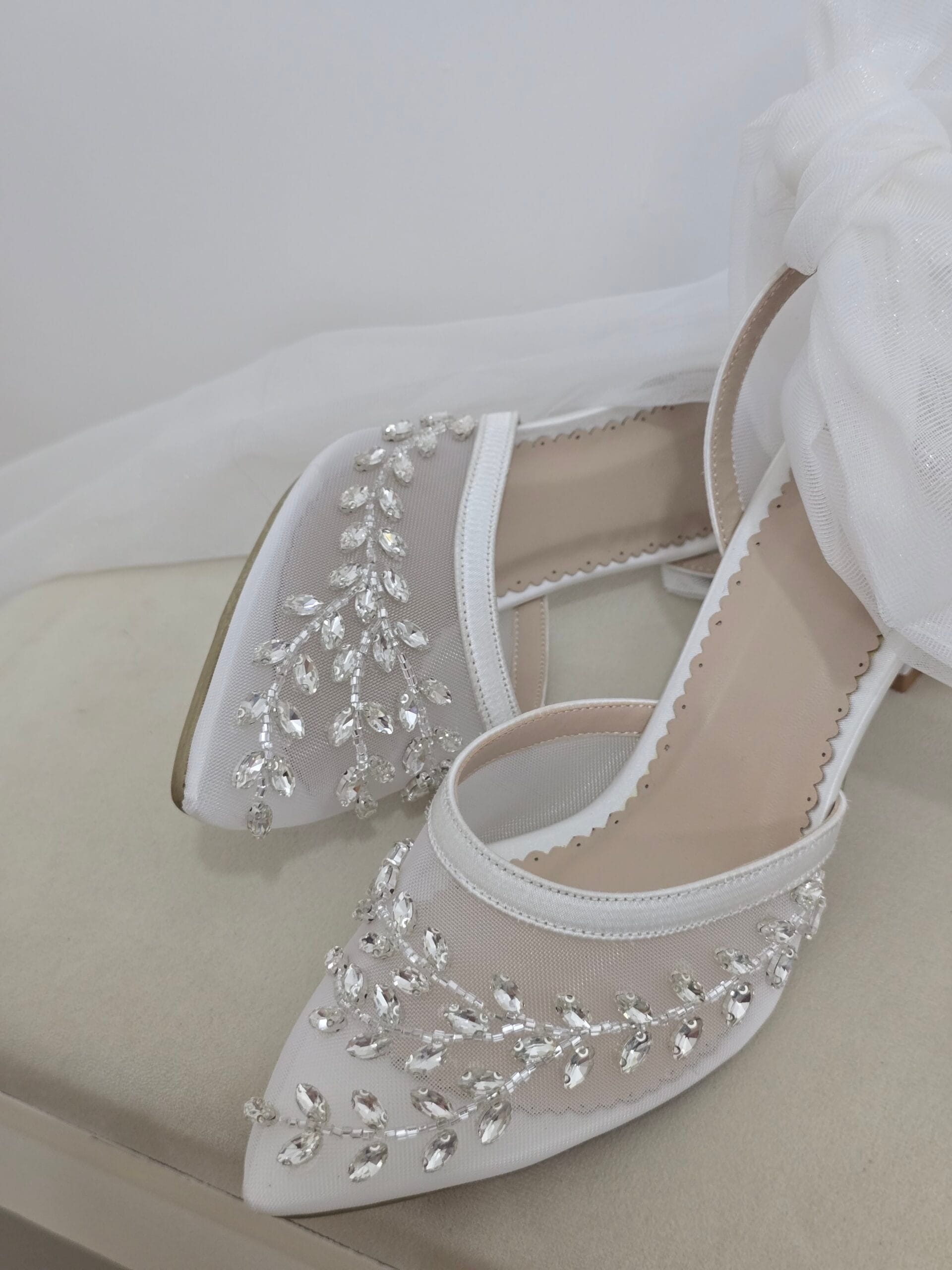 این کفش عروس با طراحی خاص و جواهردوزی ظریف، مناسب عروسهایی است که به زیبایی و راحتی اهمیت میدهند.