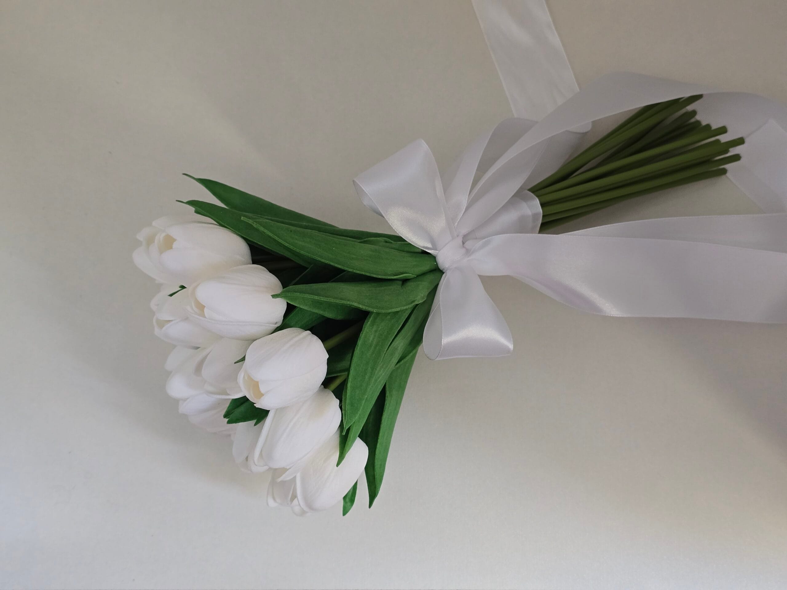 دسته گل عروس لاله لمسی یکی از محبوبترین مدلها برای عروسهایی است که به دنبال ظاهری طبیعی، ماندگار و بدون نگرانی از پژمردگی هستند. گلهای لاله لمسی با بافت نرم و ظاهر بسیار نزدیک به گل طبیعی، حس لطافت و زیبایی خاصی به استایل عروس میبخشند.