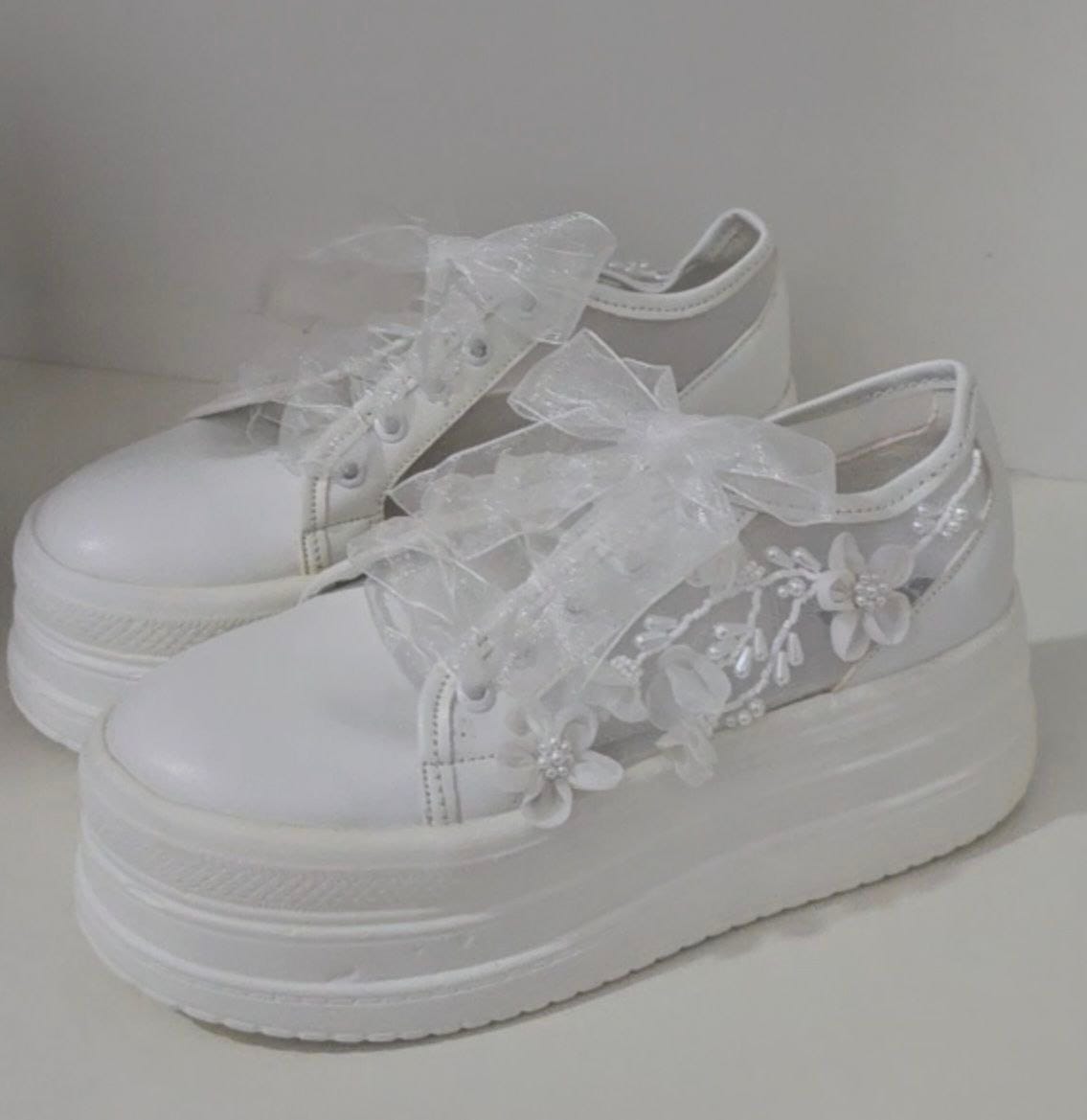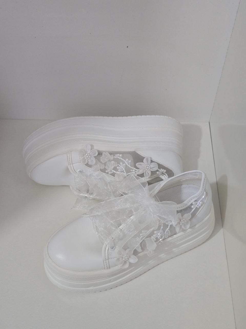 این کتونی عروس با جواهر دوزی ظریف ، انتخابی خاص برای عروسهایی است که علاوه بر زیبایی، به راحتی نیز اهمیت میدهند. تمامی تزئینات به صورت دستی و با دقت بالا دوخته شدهاند تا علاوه بر جلوه لوکس، دوام بالایی نیز داشته باشند.